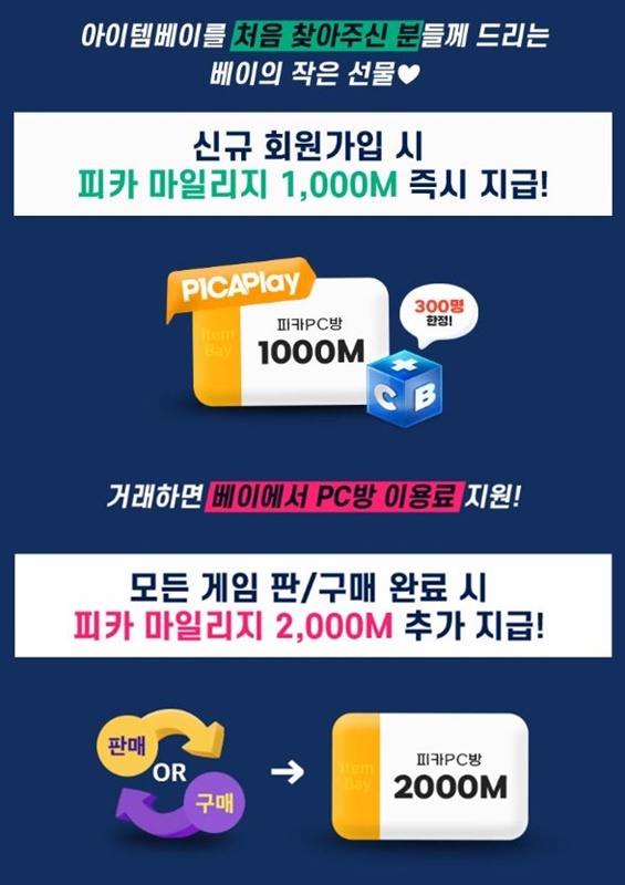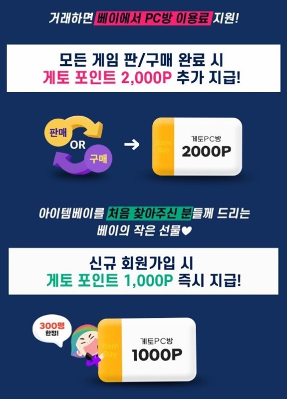 아이템베이 신규 가입시, PC방 이용에 보탬되는 1,000원을 받으실 수 있고
