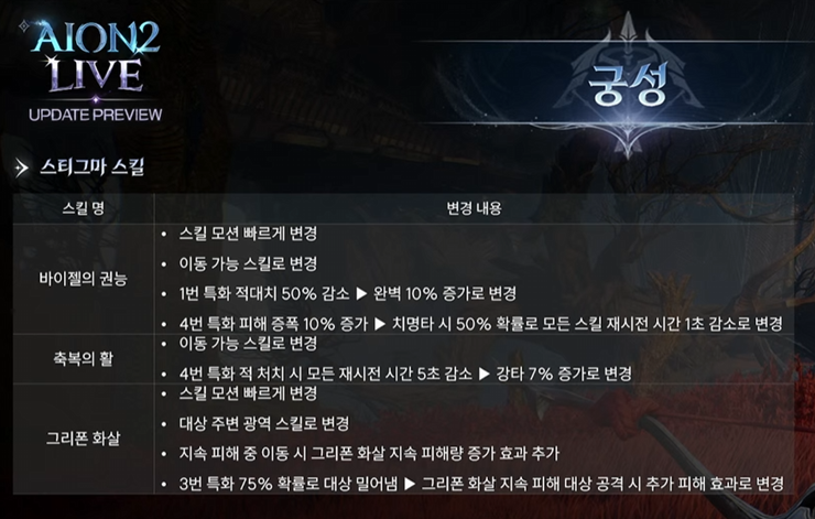 - 직업별 기존 스티그마 스킬 개선 및 신규 스티그마 스킬 1종 추가